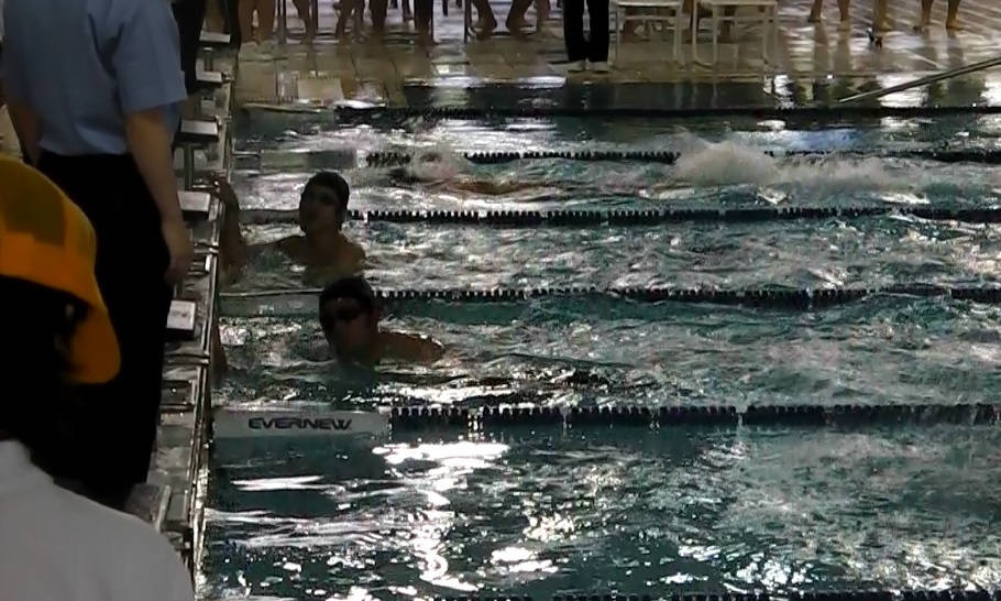 - 作戦の甲斐あって隣のコースにタッチ差で勝利