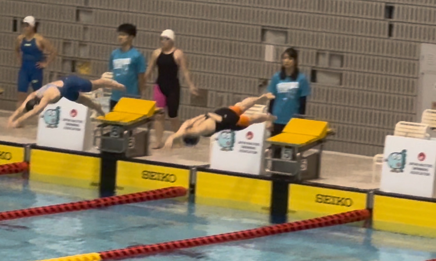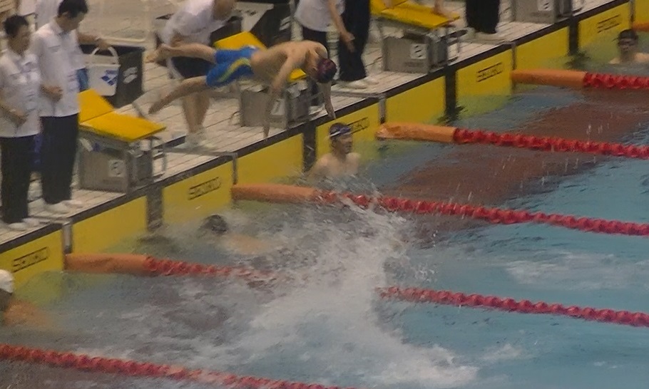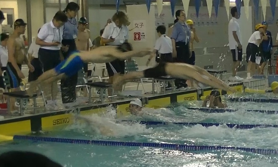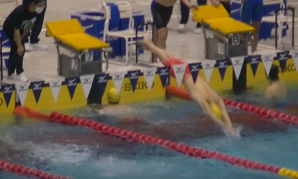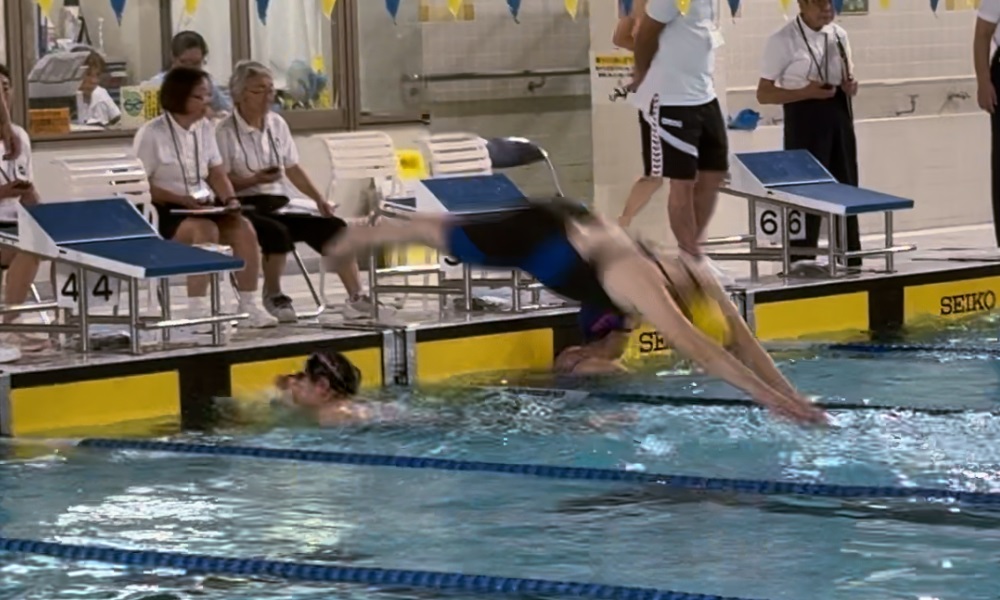 - 巌さん(5コース)入水時に空中にいる根本さん(6コース)