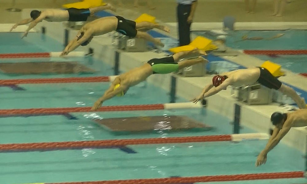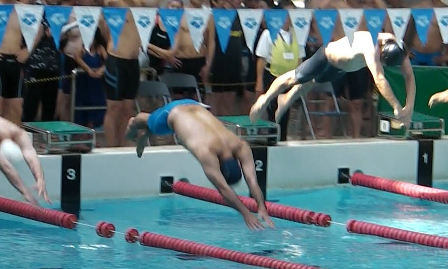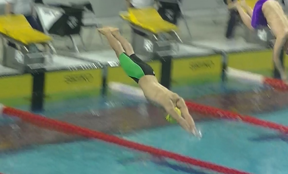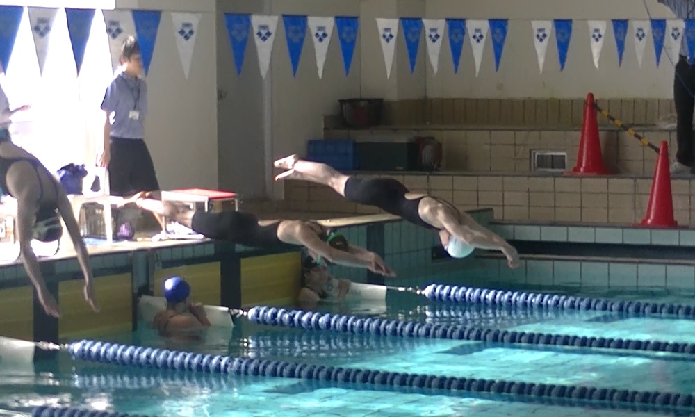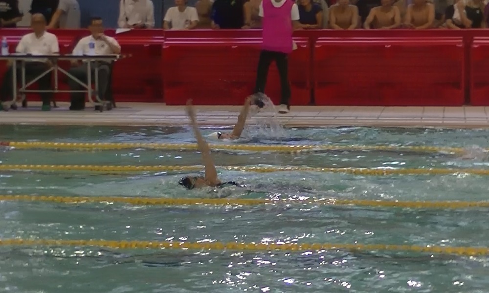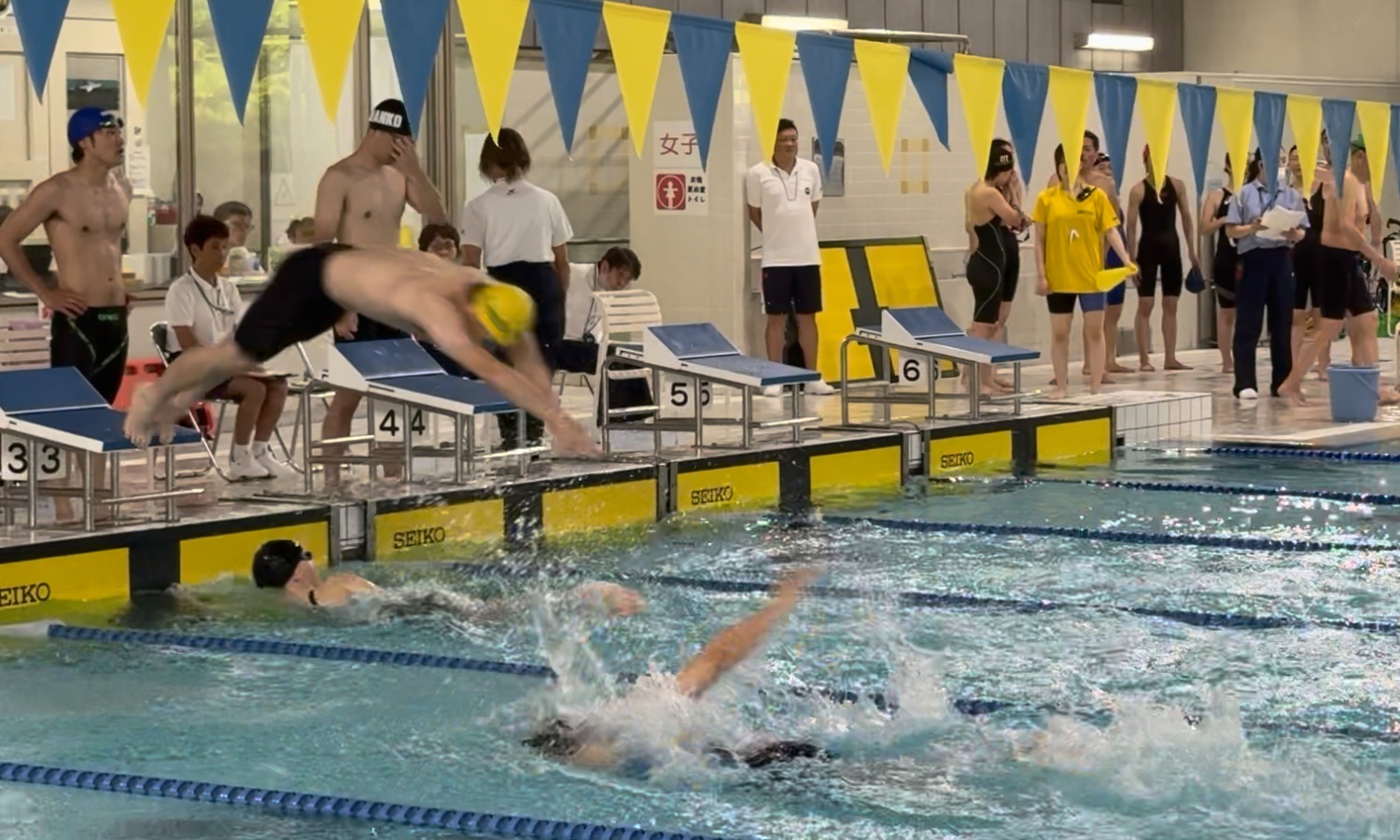 - 巌さん(5コース)入水時に空中にいる根本さん(6コース)