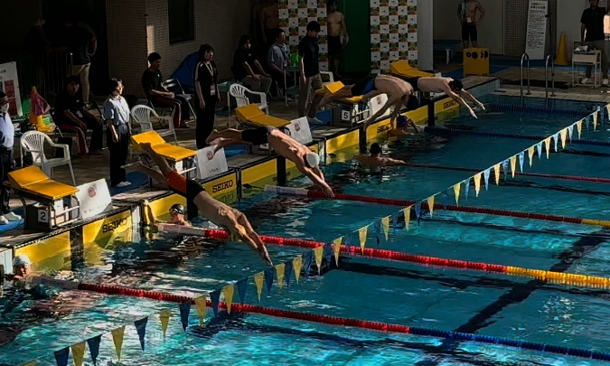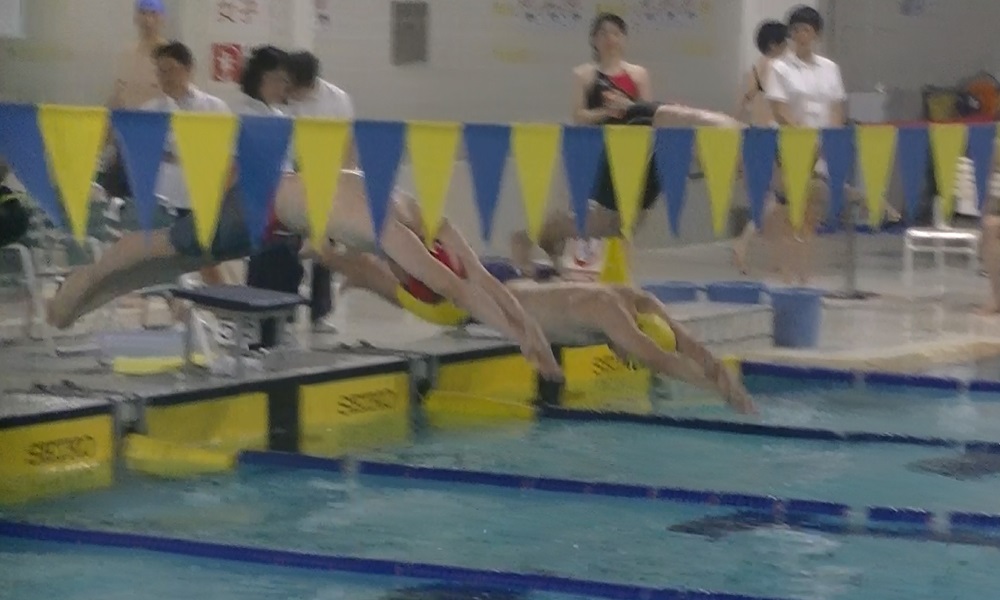 - フリーリレーは3/100秒足りず無念の4位