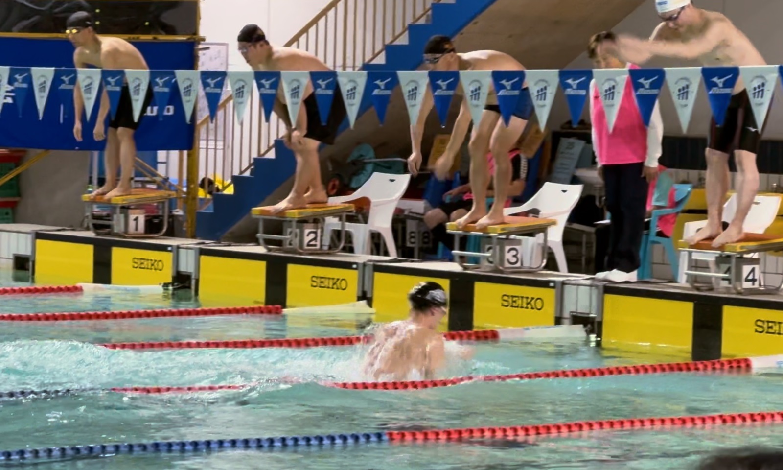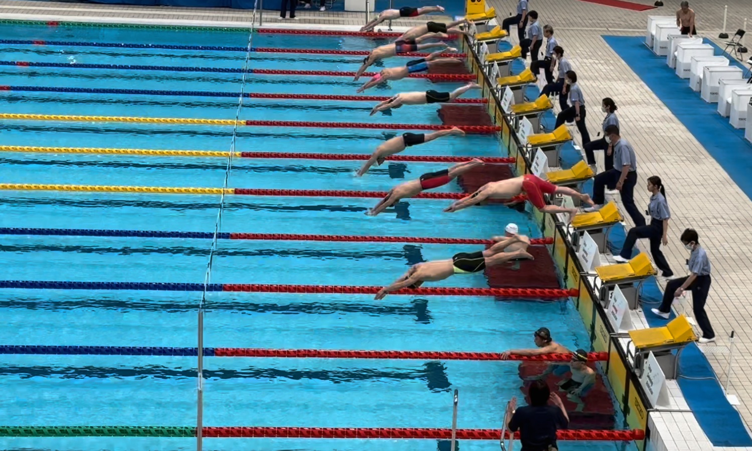 - メドレーリレー スタートと逆側は飛び込みづらいよね…